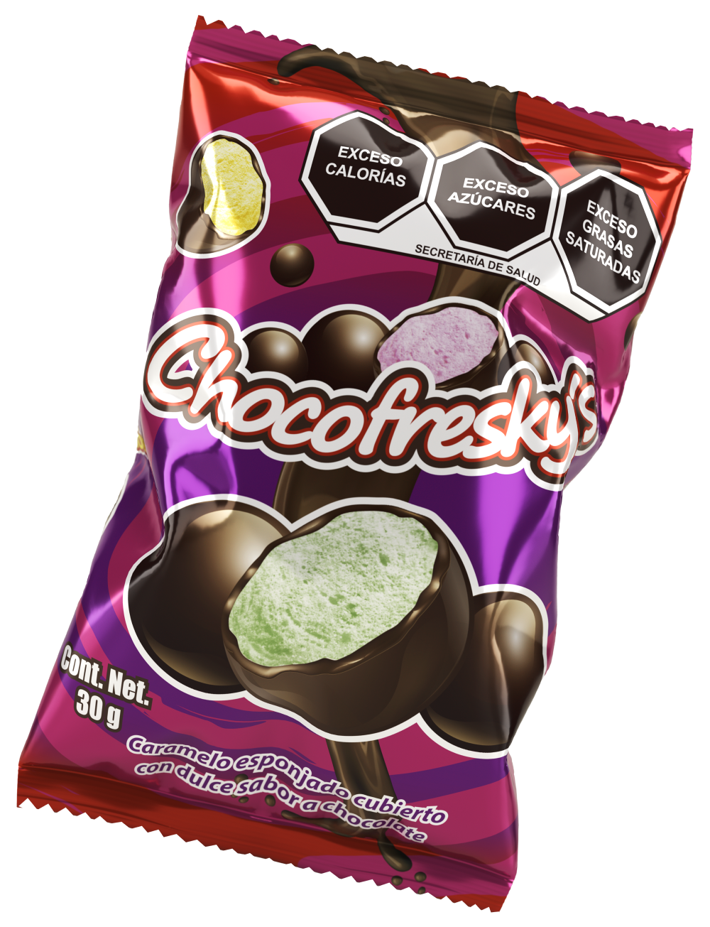 Cada bolsita de 30 g de Chocofresky’s es ideal para vender por pieza, compartir entre amig@s… o llevar una en cada bolsita del pantalón.